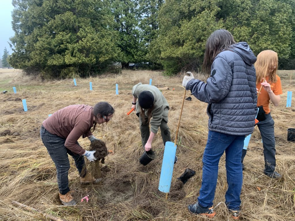 It’s a stormy December day at Whatcom Land Trust’s California Creek property. Fifteen middle and high school aged students, clad in rain gear, are planting saplings across an open field. Sounds of shovels are interspersed with laughter and shouts of “I’m the best blue-tuber!”. Wait- they said YouTuber, not blue-tuber, right?
